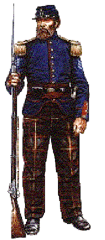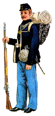 first battle of Bull Run the standard uniform of the Federal Army were worn. At right