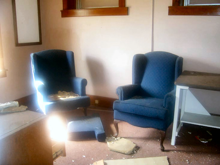 Power Plant, Lake, Large tree uprooted by tornado that went through.