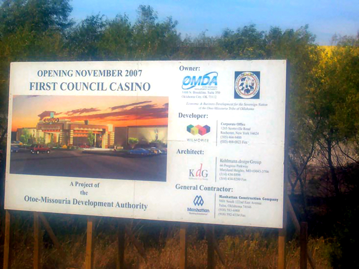 Picture of sign telling of opening of another casino, Otoe-Missouri