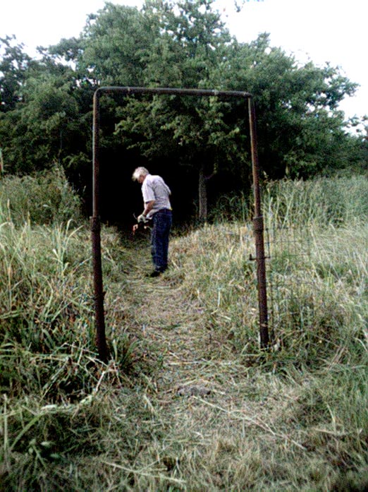 Rodney busily ran the gasoline powered weed eater down the front sidewalk and in just a little while there was an opening back up to the old front porch.