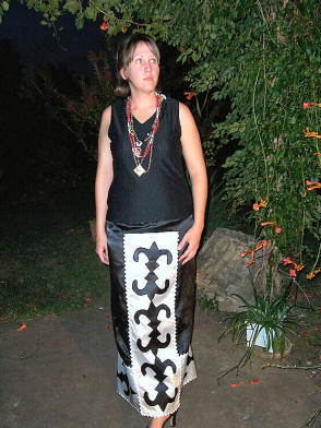 are: leggings, breechcloth, vest, shirts and scarves she makes for the