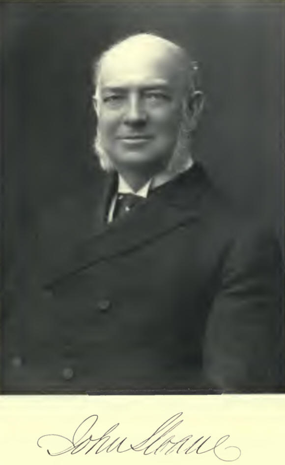 Mr. John Sloane was a son of William Sloane, of Kilmarnock, and Euphemia Douglas, of Dunfermline, and was horn on the 14th March, 1834, at Edinburgh, Scotland. He died on the 9th December, 1905, at his residence, Xo. 883 Fifth Avenue, New York City.