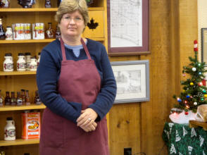On the left is Mrs Pardo and her staff on the right some of the old press cuttings and photos about the market.