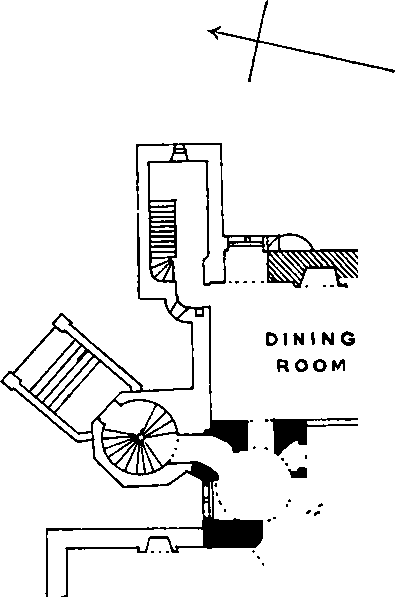 The additions made to Craigcrook in this century are shown in outline on the plan. They consist of a new entrance tower, a wing at the northwest comer, containing drawing-room, etc., and another at the north-east comer, containing kitchen, offices, and such like accommodation. This alteration has almost obliterated the square tower of the Z plan, the stair having been taken out, while the top of the tower has disappeared. We are enabled, however, to see what it was like before these alterations were made from a water-colour sketch in the library of the Royal Scottish Academy.