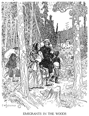 A supply of such necessaries as the settler may require being provided, a convenient lodging in the neighbourhood of his farm, will be the best to procure until a log house can be erected. If this cannot be provided, a log camp may be speedily erected in a few hours, where a family can comfortably lodge for some time, and in which (being built with logs and covered over with bark, split timber, boards, or fir tops) more comfort will be found than expected, especially after the confinement experienced by the emigrant on board ship. When this is effected another camp may be erected in which to place his goods, and thus he will find himself lodged at home on his own estate; which often gives more real satisfaction than elegant and costly mansions do to the great. Care should be taken that no large trees be left standing near the house or camp, which in falling might reach it, as in consequence of having their roots running near the surface they are liable to be laid prostrate by a sudden gust of wind. It would be advisable for the settler, if he have got the means, to employ a man accustomed to clear land for some time, by which way he would in a short time become fully acquainted with the business: or it would be well if he could contract for a job of three or four acres to be cleared off, which generally costs from two to three pounds per acre, the stumps of the trees being left in the ground, which is not only the usual plan, but in fact the best and cheapest. This he should get done round about the site of his intended buildings, which ought to be in a dry situation, and near good water.