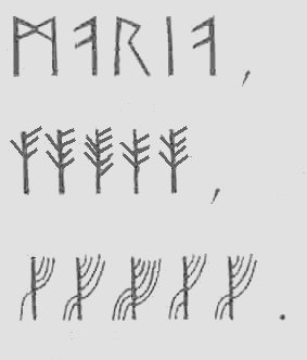 The figure shows the Name "Maria"top line: standard runes of the old futhork alphabet;