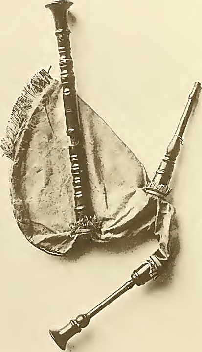 It was the war instrument of the Kernes and was a two-drone instrument in the sixteenth century ; it was blown by the mouth, and was identical in every way with the old Northumbrian and Scotch Bagpipe.