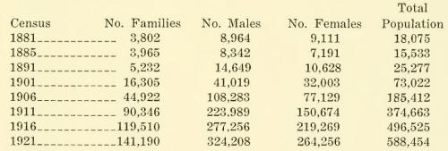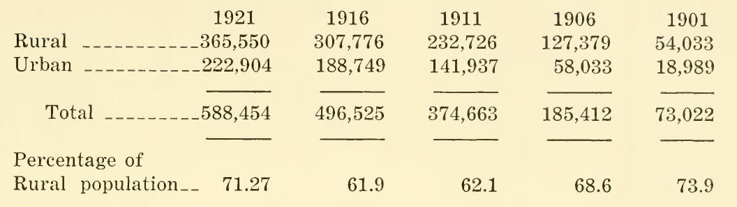 in 1906, to 385,000 in 1911, to 496,000 in 1916, and to 588,454 in 1921.