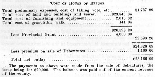 The question of having established a House of Refuge for the county (a matter which will be referred to more fully later on) was much talked about in 1892, and at the municipal elections held in January, 1893, a vote of the ratepayers was taken, which proved to be adverse to the proposition. The rural municipalities, with one exception, opposed it, while the urban municipalities, with two exceptions, were in favor of having such an institution.