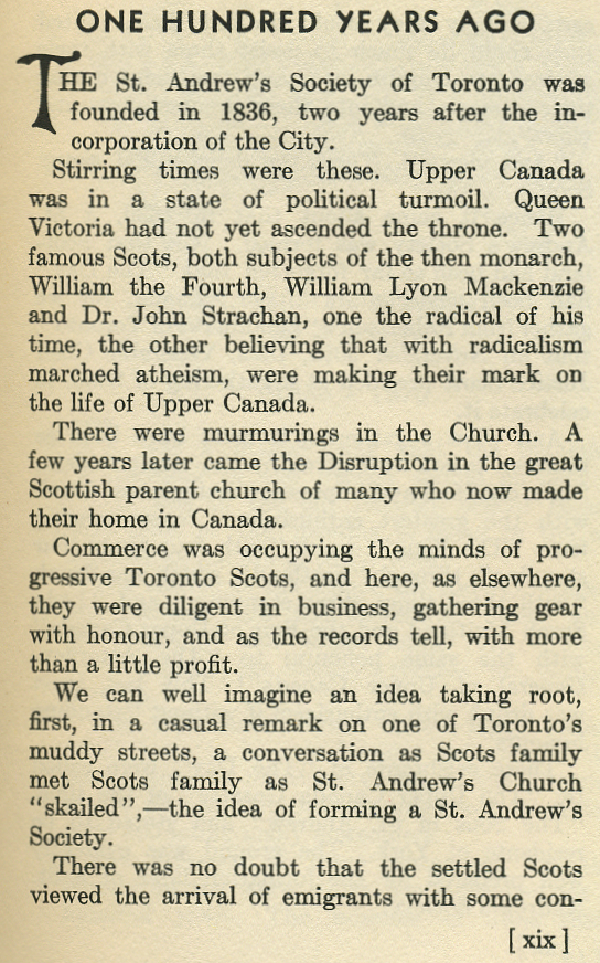 One Hundred Years History St. Andrew's Society of Toronto