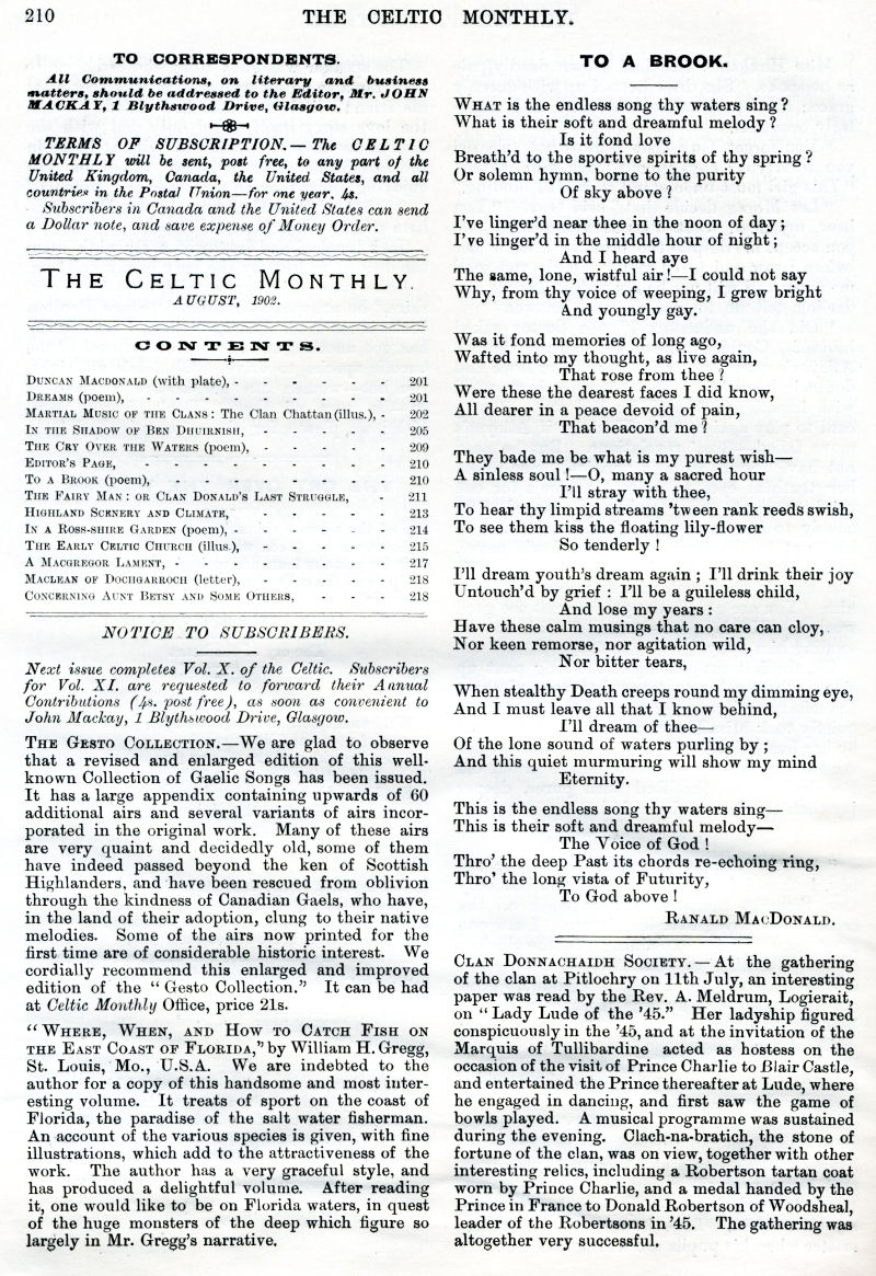 Donnachaidh Society, The Fairy Man, Highland Scenery and Climate in