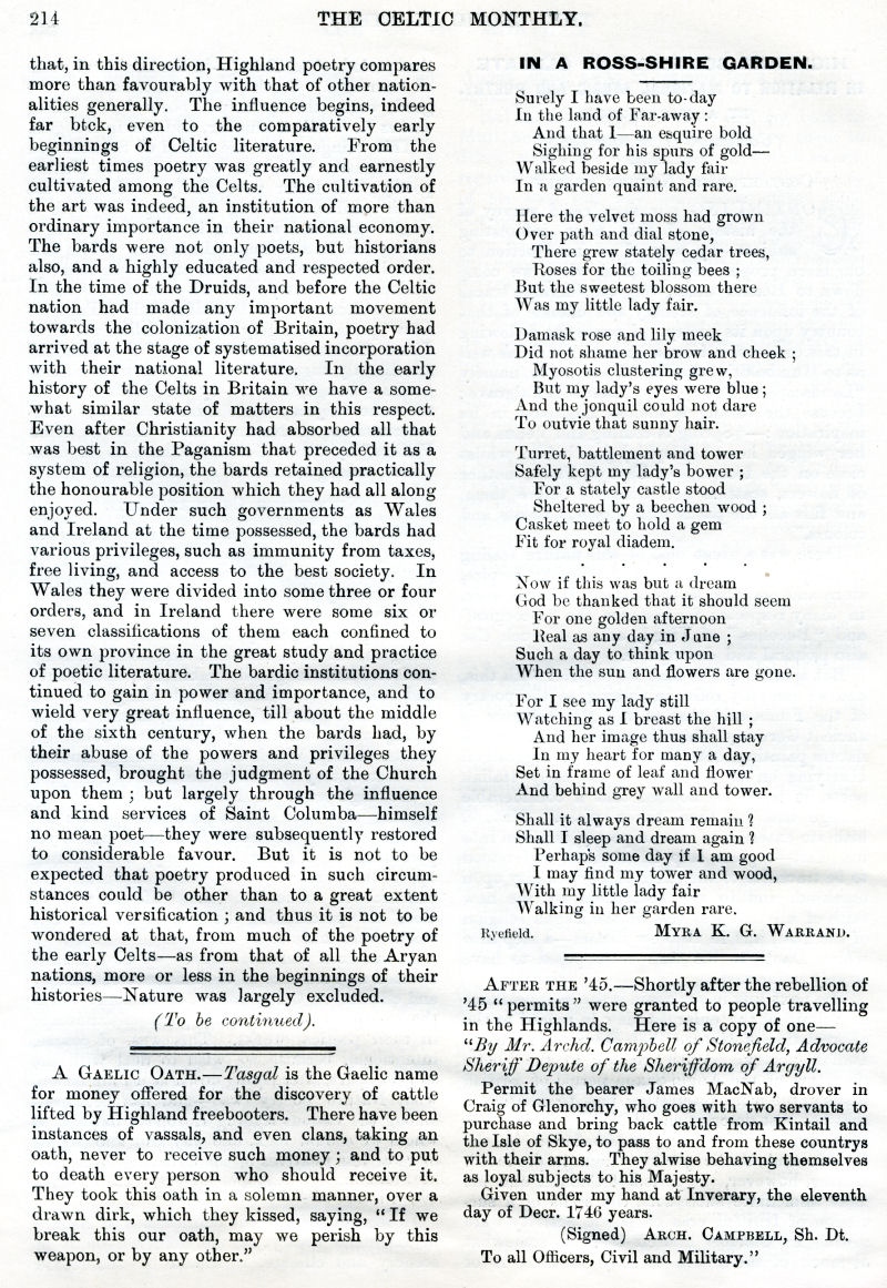 Relation to National Music and Poetr, In a Rosh-Shire Garden, A Gaelic