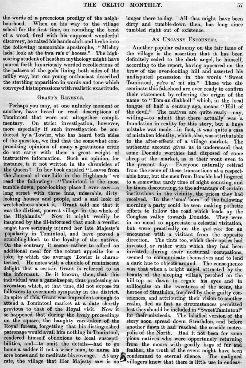 America, About Tomintoul, In the Westering of the Sun, Coming Home.