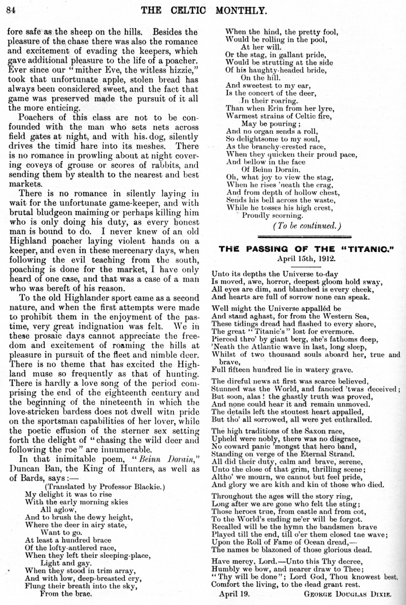 Character, The Passing of the Titanic, Gaelic Proverbs, The Late Lieut.