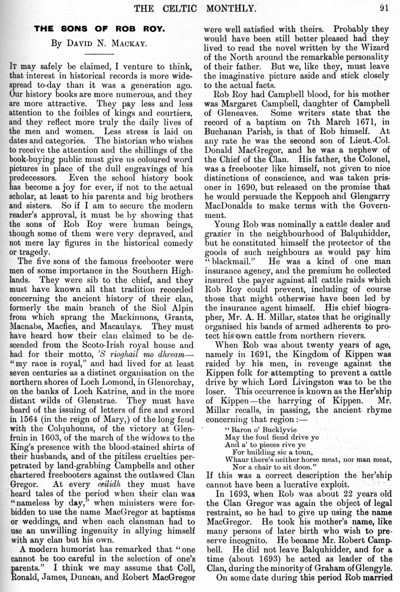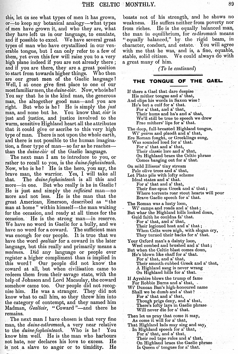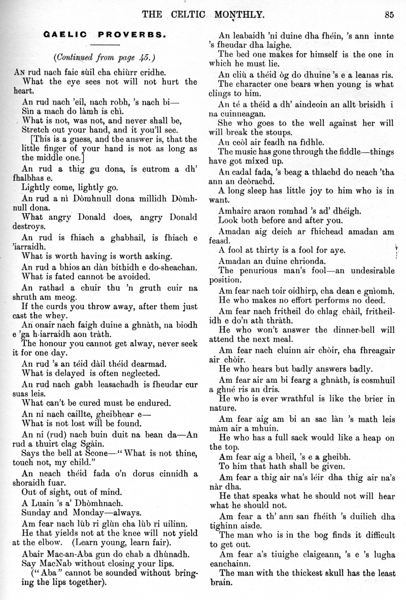 Language, The Tongue of the Gael, The Sons of Rob Roy, Celtic Notes and