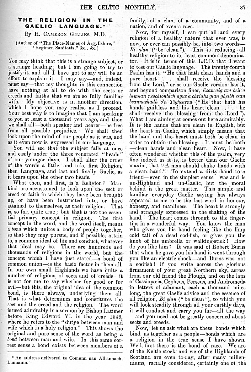 Donald Campbell R.N., To all Highland Hearts, The Religion in the Gaelic