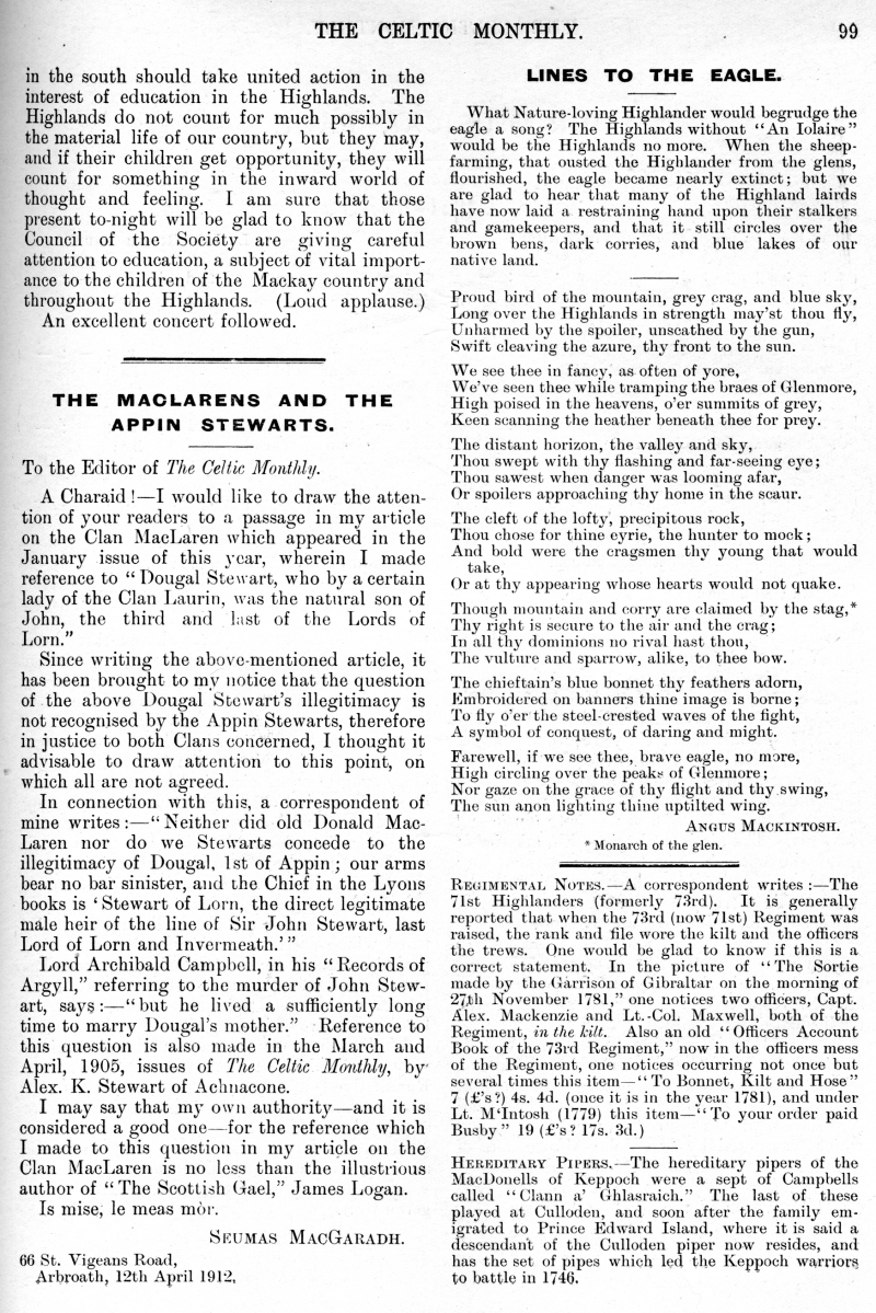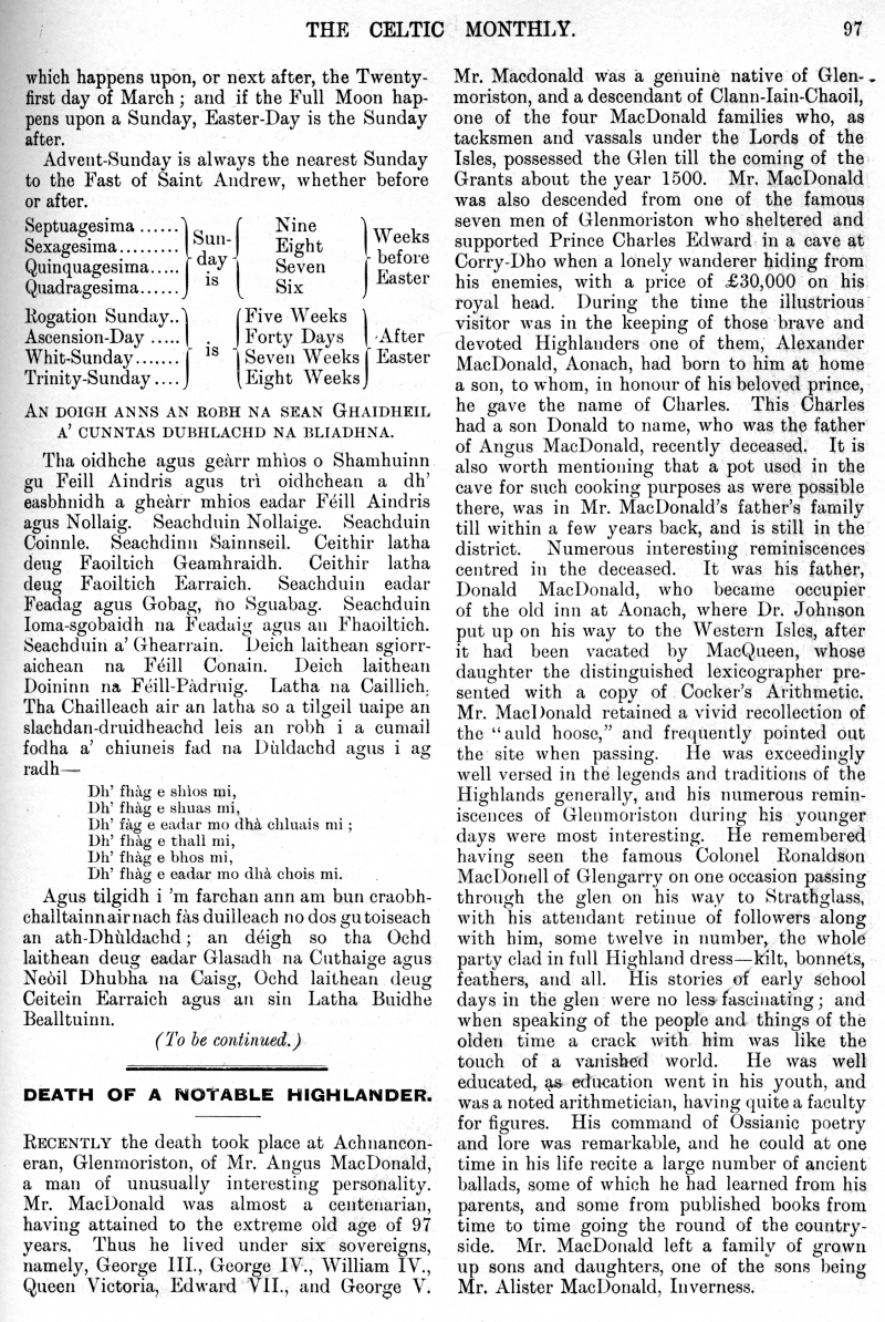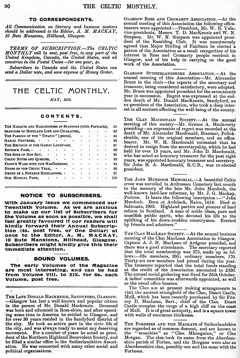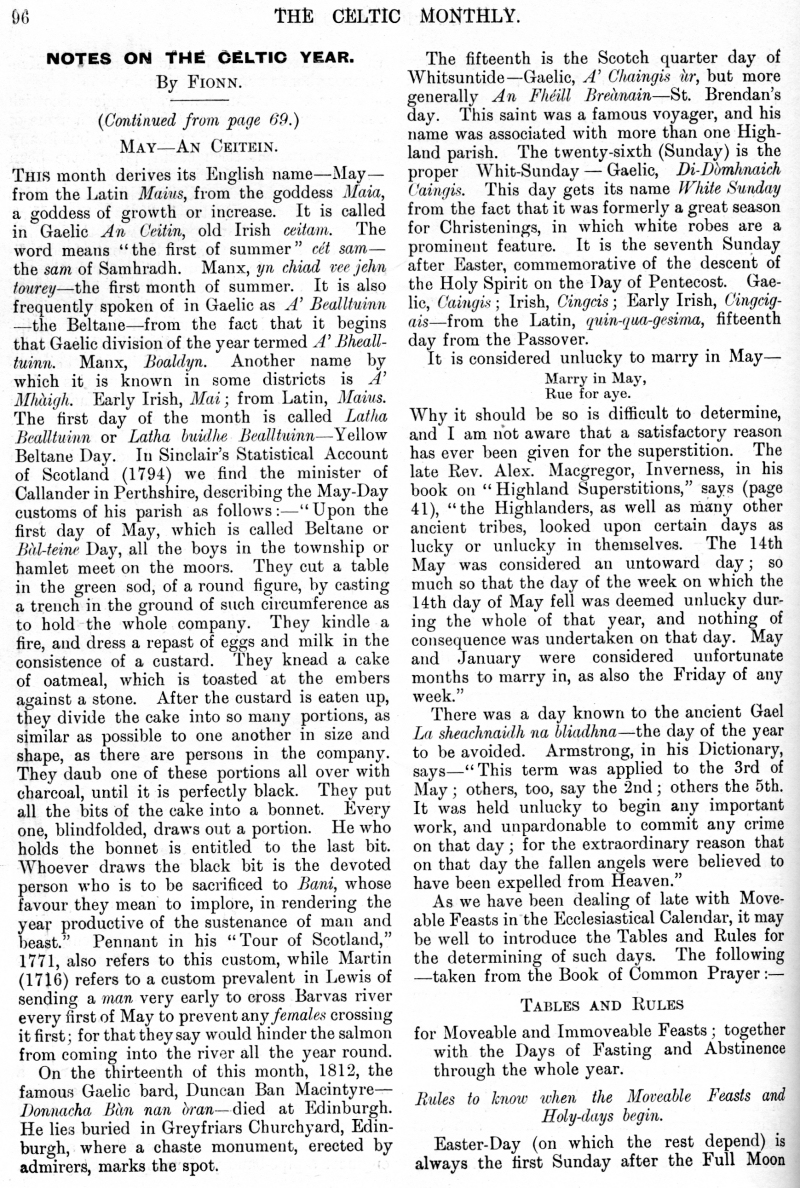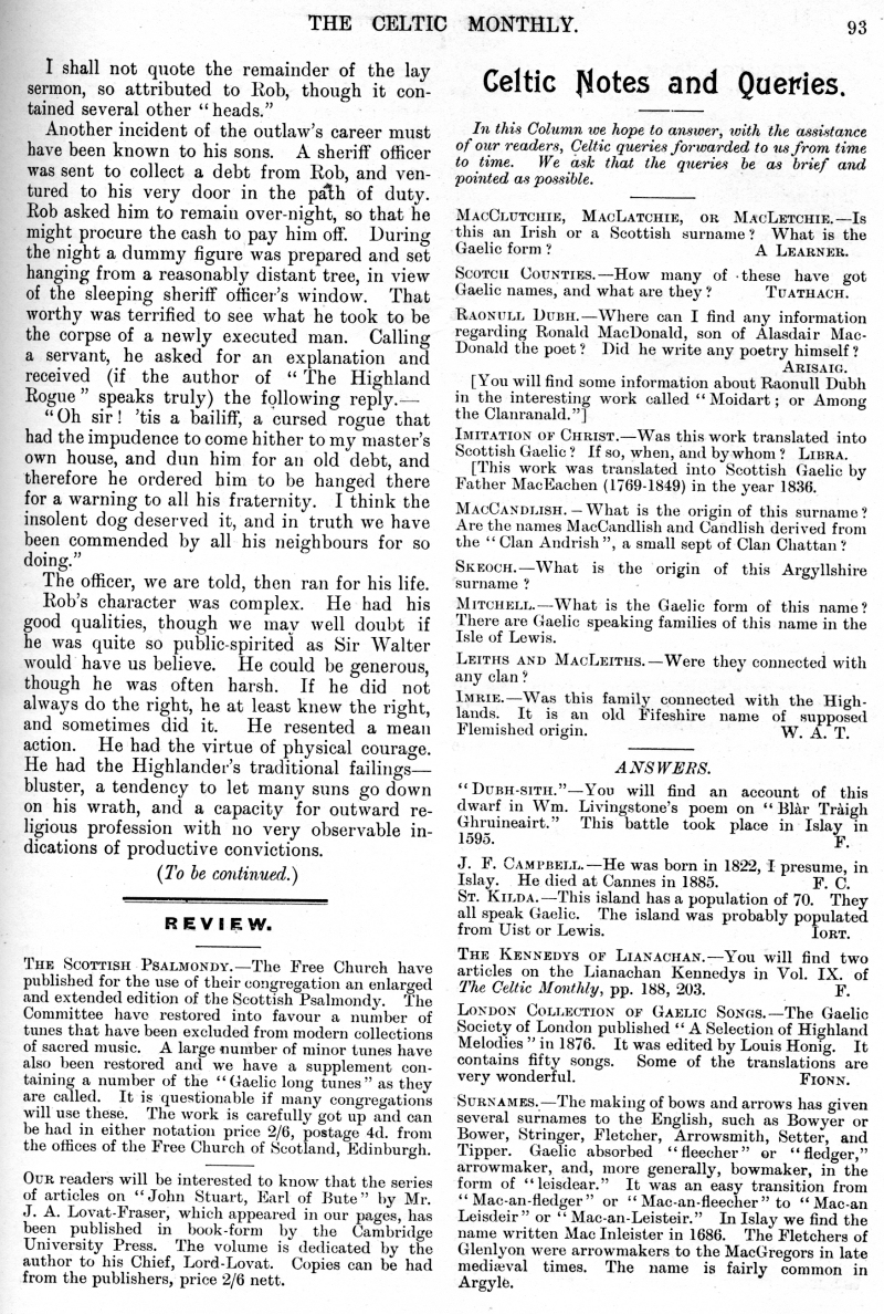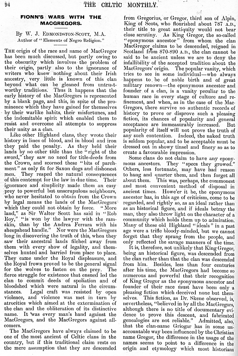 Queries, Fionn's Wars with the MacGregors, Notes on the Celtic Year,
