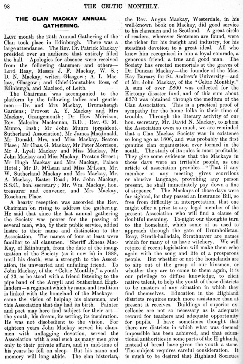 Death of a Notable Highlander, The Clan MacKay Annual Gathering, The