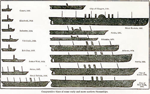 The annexed diagram of the comparative sizes of some leading steam vessels was originally used to illustrate a lecture delivered by the author during the Naval Exhibition, held in Glasgow in 1880-81, under the auspices of the city authorities.