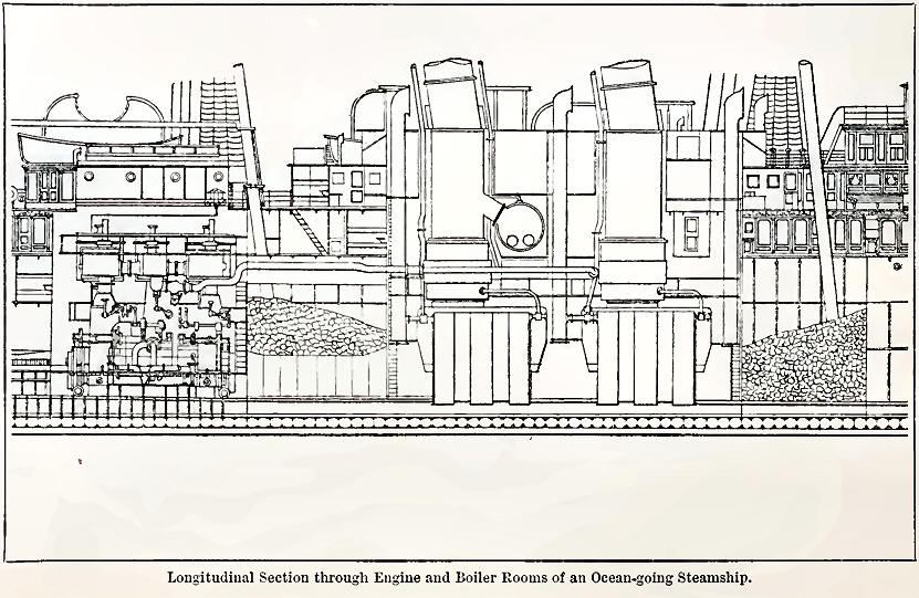 The most of our great ocean liners of the present day are built of steel. This material, both in ship plates, angles, &c., and in boiler plates, has within the last few years largely replaced the use of wrought iron,—partly due to its greater strength, whereby less material is required; a very great advantage, when we consider the great weight of the vessels and boilers of the present day. The use of steel for shipbuilding is not, however, altogether new, as, about twenty-five years ago, some river steamers were built on the Clyde of that material.