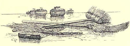 In the arrangement of the curling-house, which ought to adjoin the pond, the club must chiefly consider the comfort of the stones. Everything here should be kept neat and clean. Order in the curling-house is a proof that the club is well managed, and it conduces to order on the ice. Without a little stove, and a good press to store away a few needful and valuable articles (the nature of which we do not require to indicate), no well-regulated curling club should look upon its curling-house as complete. The house and the pond ought to be under the charge of a keeper or officer who has some force of character, and who can take a turn at the game when required. Where a competent officer is responsible, no club will have to suffer, as the Spott Club once had, by malicious persons destroying the ice. The plan adopted by that club was rather original. They advertised as follows:-
