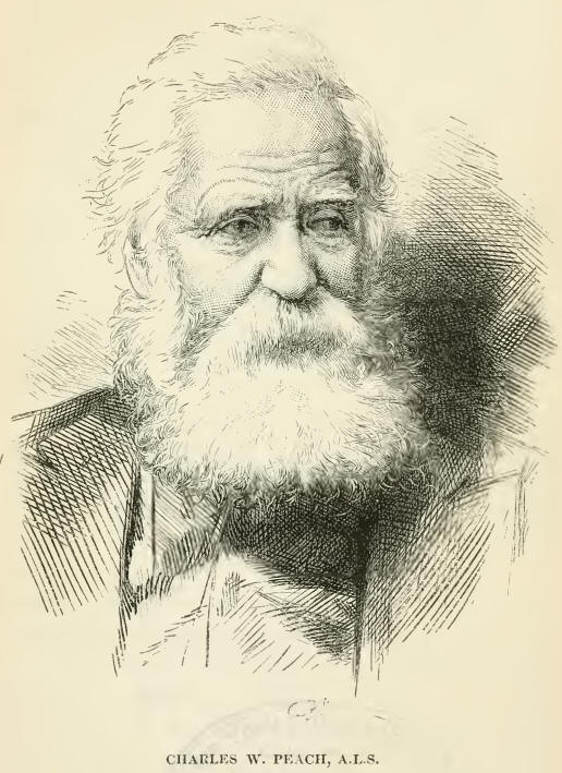 Dr. Robert Chambers was present at the York meeting. He wrote a very interesting article on the subject, which appeared in Chambers's Journal of November 23, 1844. Here is his description of Mr. Peach:— “But who is that little intelligent-looking man in a faded naval uniform, who is so invariably seen in a particular central seat in this section? That is perhaps one of the most interesting men who attend the association. He is only a private in the mounted guard (preventive service) at an obscure part of the Cornish coast, with four shillings a day, and a wife and seven children, most of whose education he has himself to conduct. He never tastes the luxuries which are so common in the middle ranks of life, and even amongst a large portion of the working classes. He has to mend with his own hands every sort of thing that can wear or break in his house. Yet Charles Peach is a votary of natural history—not a student of the science in hooks, for he cannot afford hooks; hut he is a diligent investigator by sea and shore, a collector of zoophytes and echinodermata—strange creatures, many of which are as yet hardly known to man. These he collects, preserves, and describes; and every year he comes up to the British Association with a few novelties of this kind, accompanied by illustrative papers and drawings thus, under circumstances the very opposite of such men as Lord Enniskillen, adding, in like manner, to the general stock of knowledge.