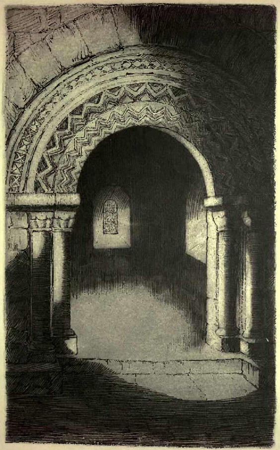 Norman arch, decorated with zigzag mouldings, with, on the exterior, a