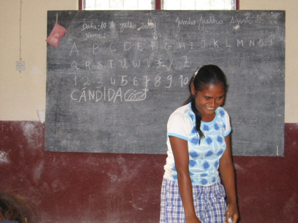 learning her alphabet in one of the Women’s Literacy Classes run by