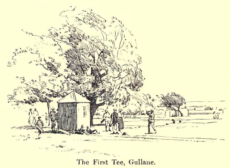 But the summer sun is supposed to be shining on these pages. And after all, this remorseless landscape, where neither the violet, the primrose, the blue bell, the wild rose, nor the honeysuckle, nor the may nor the elder, nor any of the commonplace wildings of the passing season, find footing to grow or opportunity to put out their blossoms, has another side to it. For it is a land of magnificent distances, and moreover abuts upon an always rocky, and distinguished seacoast. Along this last, too, there is for the most part a pleasant interlude, where the ruthless austerity of East Lothian agriculture pothers out into sandy commons and rolling dunes, and blowing woodlands. And here disports itself in villas, mansions, and cottages, clustering thick or sparsely scattered, a joyous population, who, as all the world knows, worship (on week days) one all-exacting deity. From Aberlady Bay and Gullane Hill, whose broad green slopes look down upon it to North Berwick, however diverse their paths may be on the first day of the week, they all lead the same road on the other six. Most of the able-bodied between four and seventy years of age among a fluctuating community of several thousand souls pursue the bounding core-ball with tireless assiduity over nearly a dozen different golf courses, and have, for the most part, no more truck with the country we have been wandering in than they have with the moon. This stretch of littoral must not be confused with the many courses, or sets of courses, on the west or northern coasts of Scotland, of championship class or otherwise, that are familiar names to southern ears. They are not classic soil ; this is. Those others belong to the modern epoch as much as Sandwich, Harlech, or Portrush, and more so than Westward Ho or Hoylake. They were almost as alien to their atmosphere as any in Kent or Ireland, and, as much as these, are the result of the modern development of the game. But here upon the Firth of Forth, we are in the real old golfing section of Scotland, though the procession of courses that on either side of it now line the shores of Fife and Lothian represent, of course, a state of things bearing small relation to that of thirty years ago—thirty, forty, sixty, or a hundred years for that matter. The small developments in detail of the game up till then are of trifling consequence compared to the chasm which divides any of those periods from this one in the number of followers and the attention bestowed on golf throughout the civilised world.