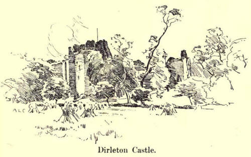 In the next century it fell through an heiress to the Haliburtons, and ultimately descended to the Ruthvens, one of whom took part in the murder of Rizzio. James VI. with characteristic timidity took refuge here for some time, when an epidemic was raging in Edinburgh, and at the Gowrie conspiracy in the same reign the Ruthvens forfeited the estates. That sinister being, Logan of Restalrig, whose concern with this business we told of when at Fast Castle, had an eye on Dirleton, as a reward for his service in the event of the plot succeeding. "I care not," he wrote, to its owner and his fellow-conspirator, "for all the other land I have in the kingdom, if I may grip it [Dirleton], for I esteem it the pleasantest dwelling in Scotland." If he wrote this with the waves raging round him at Fast Castle, one can well understand how his appetite was for the moment whetted. At this Gowrie forfeiture it was granted to Sir Thomas Erskine, who had come, it was said, to the assistance of the king at the critical moment, and was now created Lord Dirleton. During the civil wars the castle was captured by Generals Monk and Lambert, and finally dismantled. In due course it was purchased with the adjoining property by Sir John Nisbet, the most eminent lawyer in Scotland, at the close of the seventeenth century, whence passing in the female line more than once, it is now with the Archerfield estate the property of Mrs. Hamilton Ogilvie.
