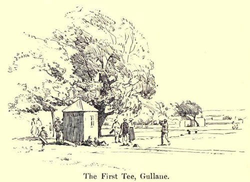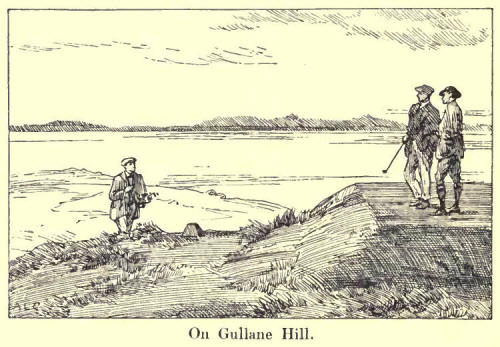 This is assuredly classic soil, not merely because North Berwick lies upon it, and more historically famous Musselburgh, shorn of its glory and attraction, lies virtually within sight, but from the fact that golf has been for hundreds of years a familiar thing upon the coast. What a difference, though, in degree! I think as a southerner one may fairly account it a privilege, in view of all that has happened, to have played over Gullane links after an interval of forty years. The fact, too, of having followed the game more or less through all its changes and expansion in the South makes such isolated memories of these old conditions seem rather precious. Special trains from Edinburgh and streams of motors from everywhere now bring players to the three courses laid out on and about the broad low hill of Gullane, to that of Luffness at its foot, or to the adjacent championship course of Muirfield. While on a sixth arena, of more modest compass, infants of all ages and both sexes engage with as much gravity as their elders. A mixed foursome, aggregating perhaps thirty years, may be seen holing out on one green, while on a neighbouring tee an urchin, as recently hatched, is addressing his ball with preternatural gravity. Such wee folks are usually incapable of playing ordinary games by rule and to order. None of those spasmodic evolutions quite irrelevant to the business, nor clamorous interludes which distinguish the very small boy wielding a bat or delivering a ball of any kind are visible here. They appear to play what was once called in its callow days of golf-understanding by the southern press, the "old man's game," with all the gravity of an old man. This may be due, in part, to the discipline and sporting spirit, which it is apparently the sacred duty of the attendant, mother, nurse, or governess, in this atmosphere to instil. The solemnity and attention to green etiquette of these midget golfers under the eye of their mamma, who will doubtless play her round in the afternoon, is an engaging spectacle, not to be witnessed, for lack of opportunity, on any English courses known to me. Gullane course in the dim days when, as a light-hearted cricketer from the far south, in the company of my young Scotch friends, I first miss-hit gutty balls round it, had just, I think, been increased to fifteen holes.