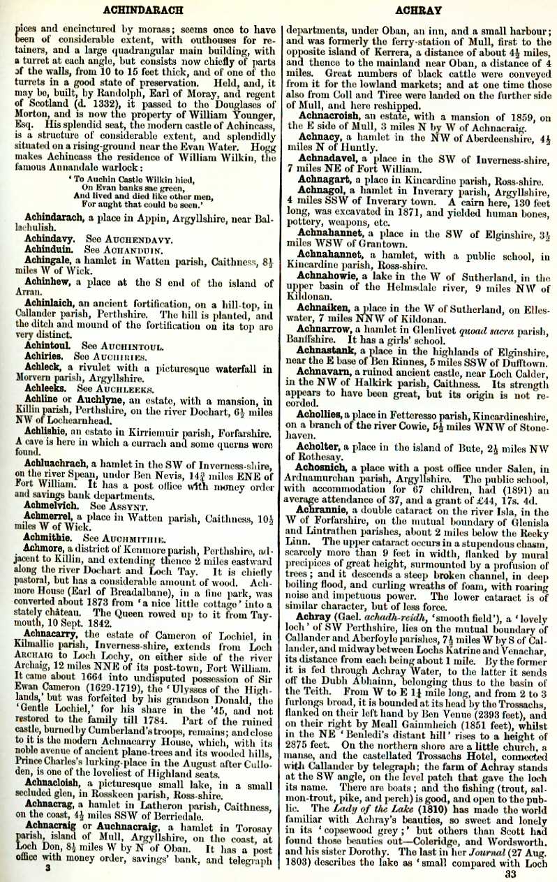 Achinduin, Achingale, Achinhew, Achinlaich, Achinlaich, Achintoul,