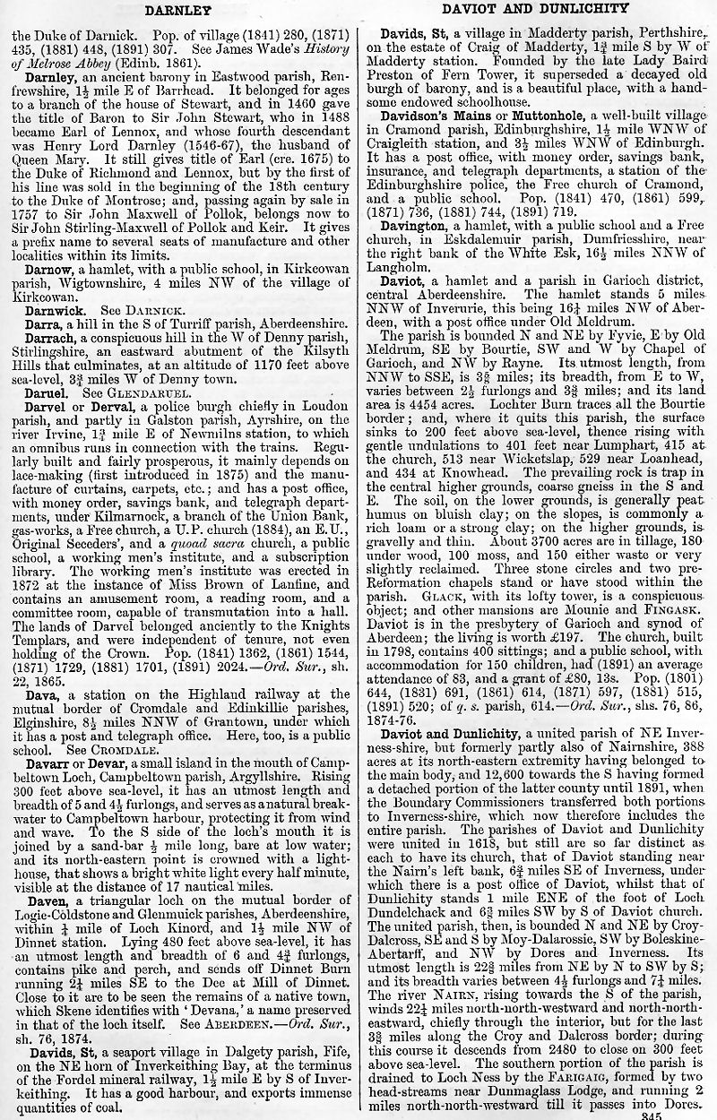 Davids, Davidson's Mains or Muttonhole, Davington, Daviot, Daviot and
