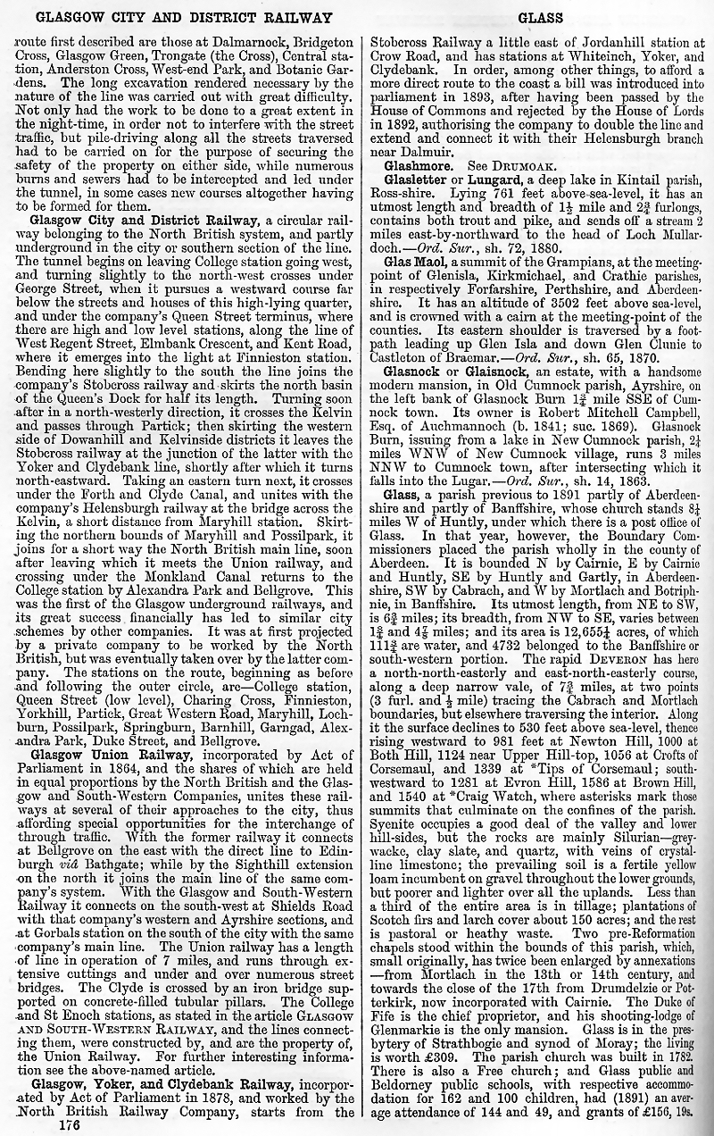 Glasgow Central Railway, Glasgow City and District Railway, Glasgow Union Railway, Glasgow, Yoker and Clydebank Railway, Glasgmore, Glasletter or Lungard, Glas Maol, Glasnock or Glaisnock, Glass