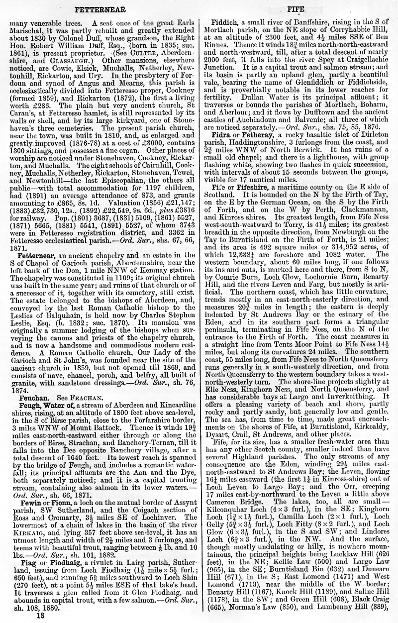 Fetternear, Feuchan, Water of Feugh, Fewin or Fionn, Fiag or Fiodgaig, Fiddich, Fidra or Fetheray, Fife or Fifeshire