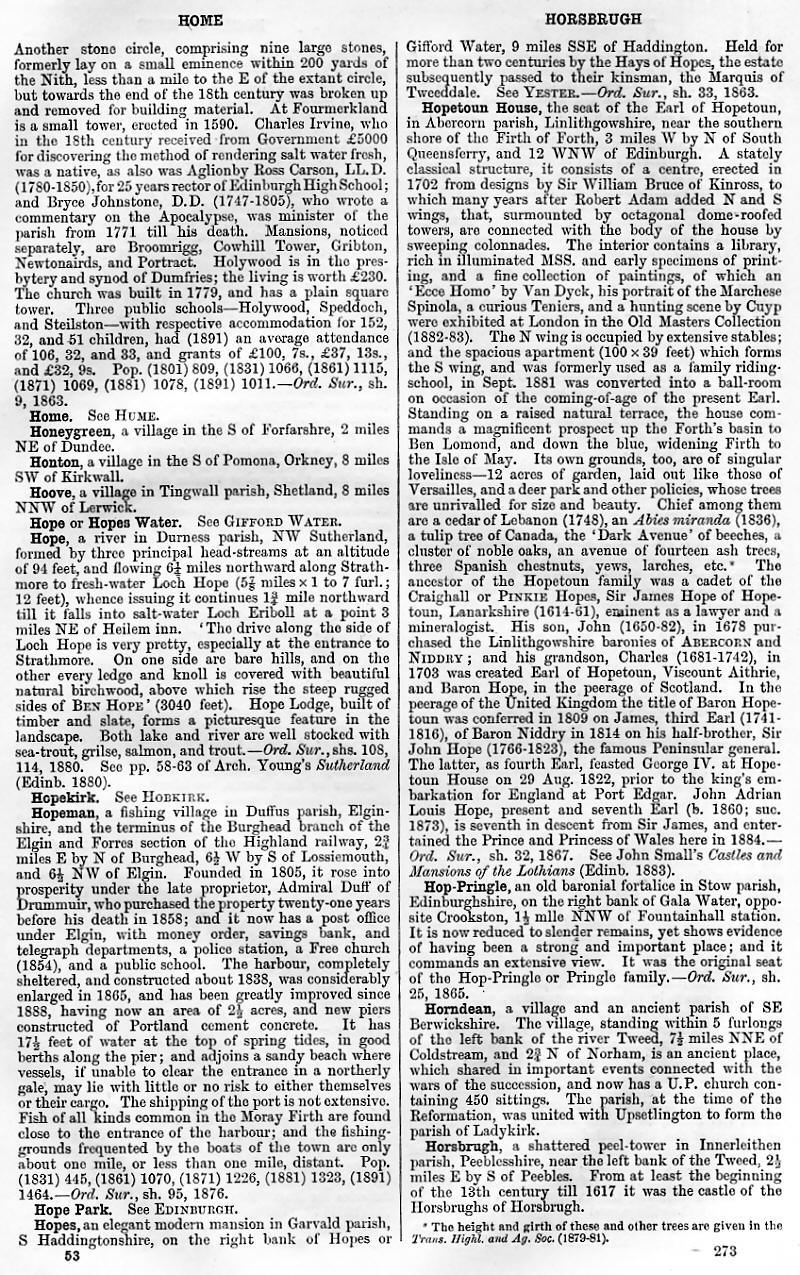 Home, Honeygreen, Honton, Hoove, Hope or Hopes Water, Hope, Hopekirk, Hopeman, Hope Park, Hopes, Hopetoun House, Hop-Pringle, Horndean, Horsbrugh