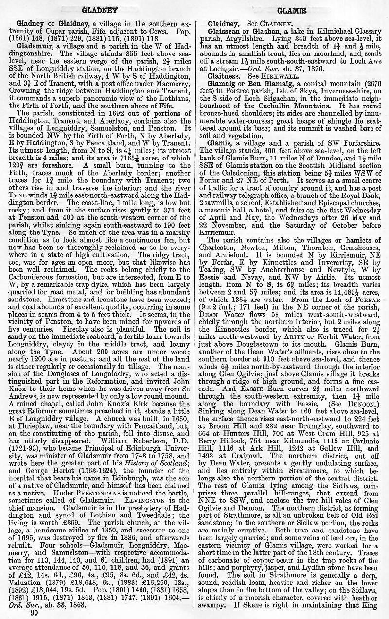 Gladney or Glaidney, Gladsmuir, Glaidneyy, Glaissean or Glashan, Glaitness, Glamaig or Ben Glamaig, Glamis