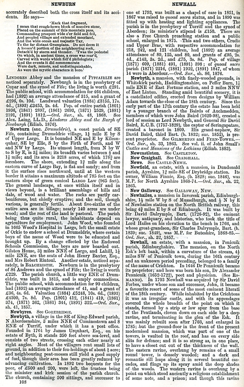Newburn, Newbyres, Newbyth, Newcastleton, New Craighall, Newe, Newfield, New Galloway, Newhailes, Newhall