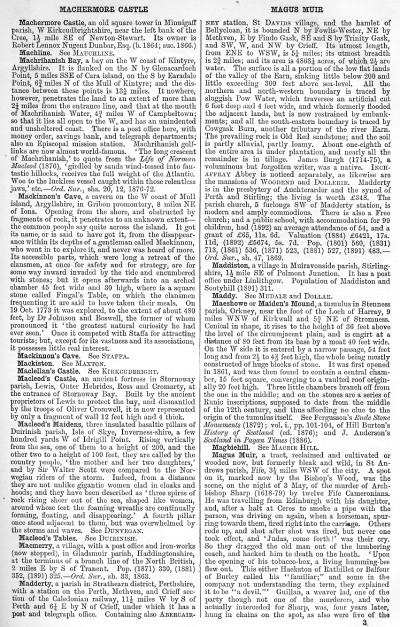 MacLeod's Maidens, MacLeods's Tables, Macmerry, Madderty, Maddiston, Maddy,