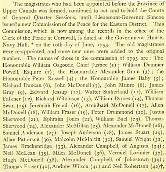 names of those in the commission of 1793 are: The Honourable William Osgoode