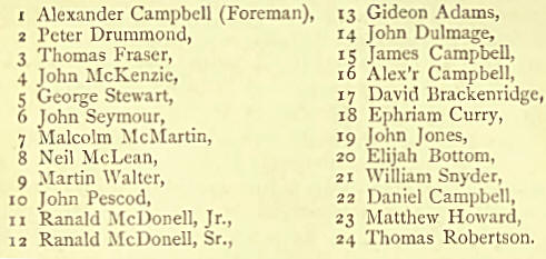 French (16), Archibald McDonell (17). Allen McDonnell (18), William Eraser