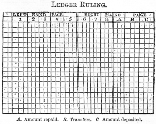 book, is carried throughout the whole ledger. The sums deposited and