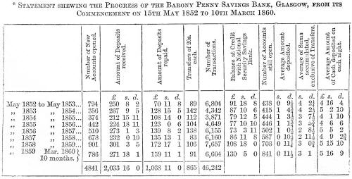 Penny Banks in Glasgow has, since May 1852, received in small