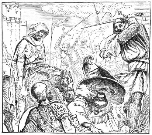 The most truly tragic episode of the book, however, is the story of Renaut Porquet, a knight, who, in driving in the Saracens, pressed into the city, and had the gates closed upon him. There is real pathos in this:—
