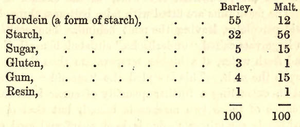 A remarkable change takes place in the grain during its conversion into malt, as will appear from the following analysis:—