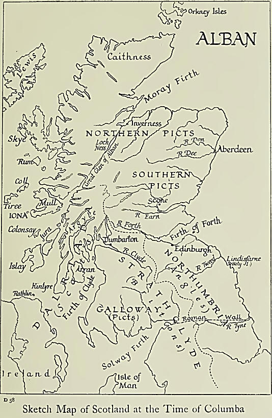 This narrative is not reliable. Adamnan not only does not mention it, but he speaks of Columba’s having revisited Ireland on ten different occasions. It is more likely that his departure from Ireland was concerned with the position of his kinsfolk in the Scottish Dalriada (Argyllshire), so named after the Irish Dalriada (Antrim), whence they came.