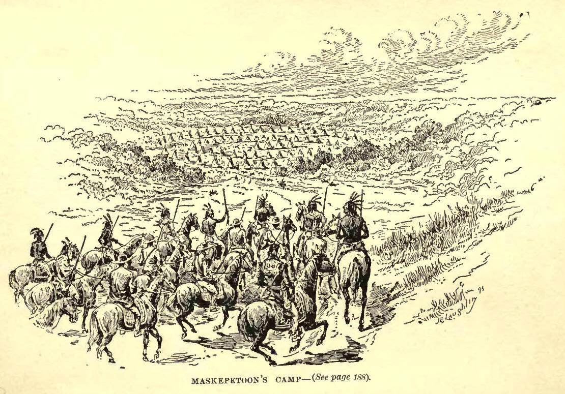 In and out among their tents, and beyond them for a mile all around, hundreds of horses were feeding, while on almost every knoll groups of guards could be seen, whose duty it was to watch over these herds of horses, and, in so doing, the camp also.