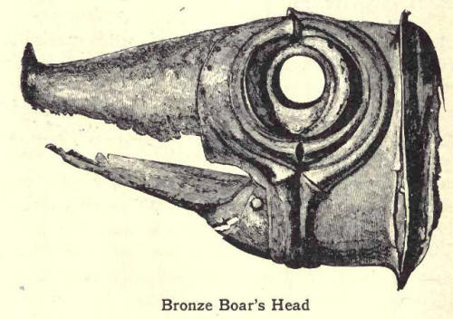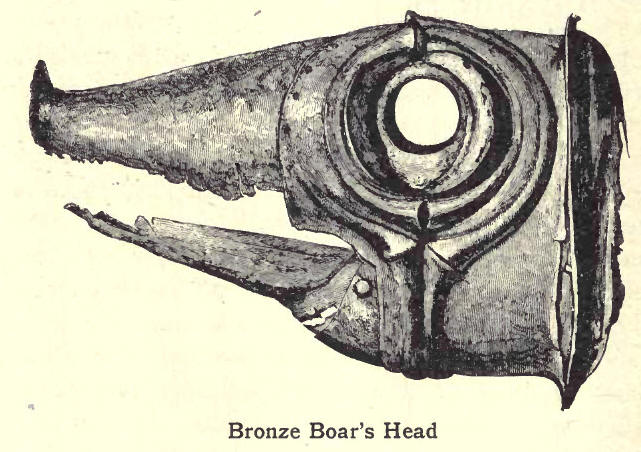 fine, with bold ornamentation. A most interesting relic is a boar's head of