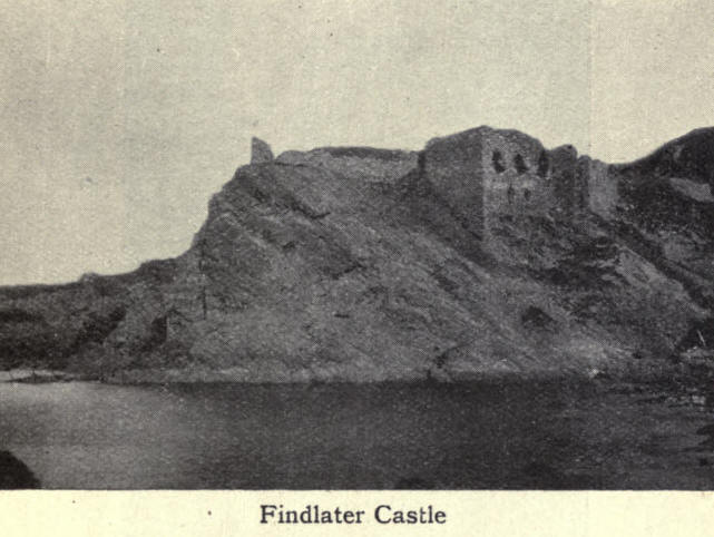 The ruins of Findlater Castle, in the parish of Fordyce, are among the most picturesque in the county. A miniature Gibraltar in the day of its strength, the old castle stands on a peninsulated rock by the sea shore and still affords evidence of its former importance. John Leslie, Bishop of Ross, in his History (1578) describes it as "a castle so fortified by the nature of its situation as to seem impregnable," while Gordon of Straloch calls it in 1662 "deserta arx."