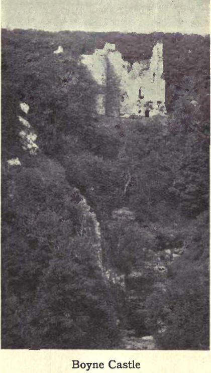 forming the eastern side of a ravine through which the stream flows, are the picturesque ruins of a more recent Castle of the Boyne, built probably in the sixteenth or the seventeenth century, which still suggest to the beholder a strength and magnificence unequalled by any other stronghold in the district.